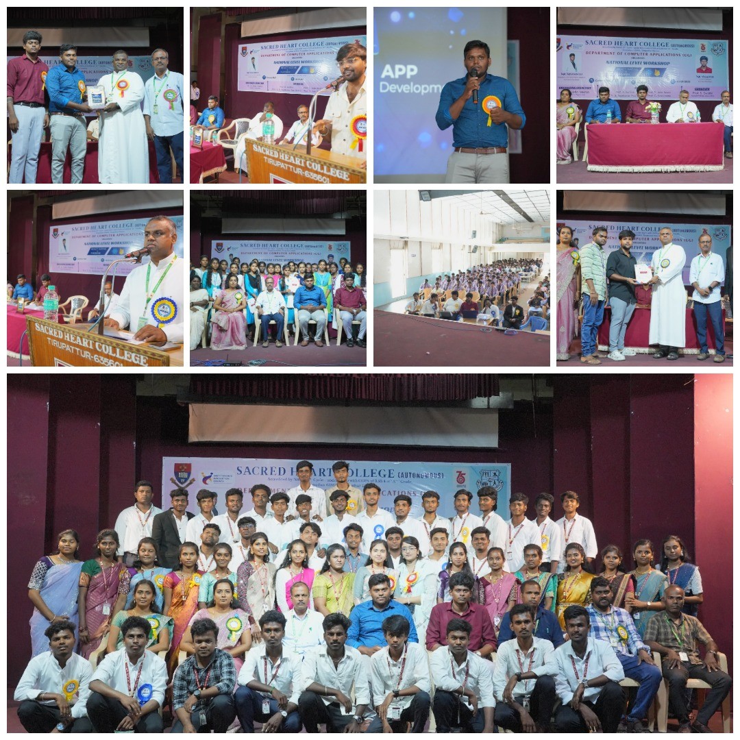 The Department of Computer Applications (UG), Sacred Heart College (Autonomous), organized a National Level Workshop on “React Native & Firebase” on 10th September 2025 at Carreno Hall. The workshop saw an enthusiastic participation of 373 students and professionals, comprising 108 external participants, 265 internal students. The inaugural session was graced by Rev. Dr. Samson Shanmugam, who delivered the inaugural address emphasizing the importance of mobile app development skills in today’s digital era. On this occasion, Mr. Kasi, an alumnus of the department, also shared his expertise and insights on the challenges faced in the IT industry, motivating participants to prepare themselves for real-world opportunities.