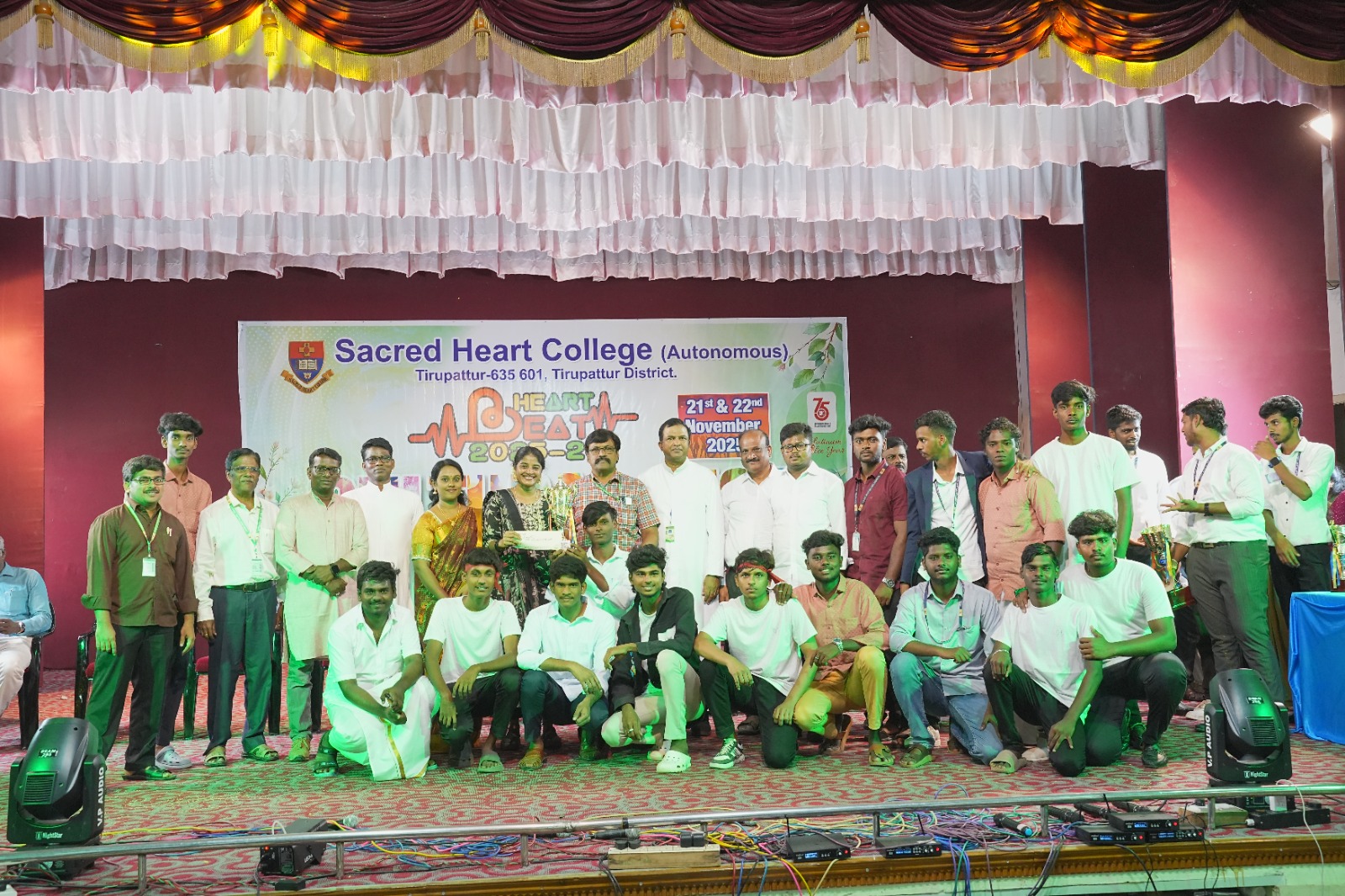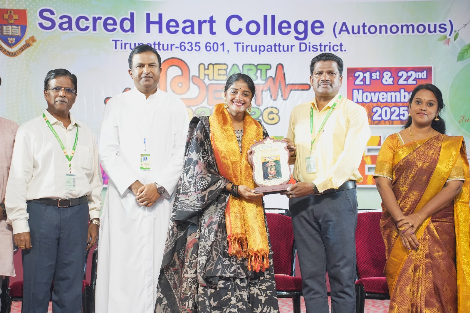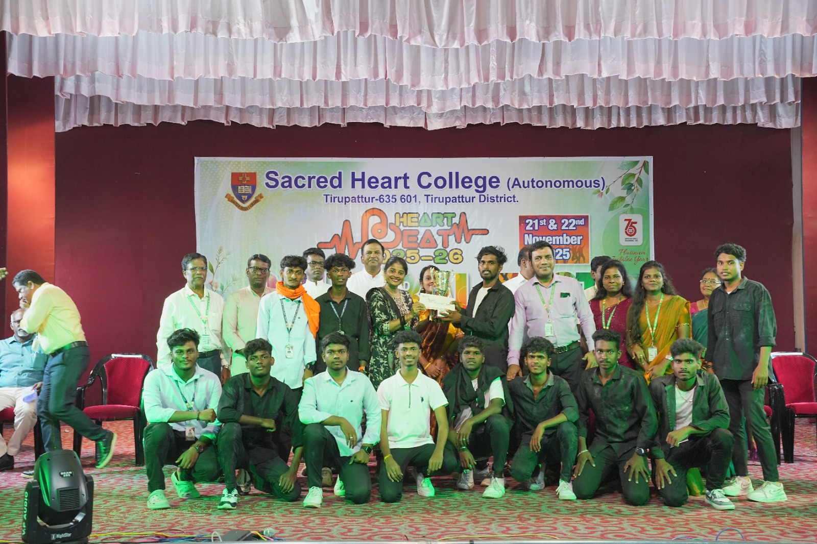 The Cultural Fest Heart Beat 2025 was celebrated with great enthusiasm in Sacred Heart College (Autonomous), Tirupattur on 21st November 2025 at Kamarajar Arangam. The programme began with a soulful prayer song by the College Choir, setting a serene tone for the day.