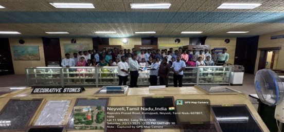 The PG and Research Department of Management Studies has organized a one day Industrial visit to Neyveli Lignite Corporation of India Limited (NLCIL) on 22 November 2025. The students visited the following places: Open Cast Mines Afforestation, Nehru Centenary Museum of Earth Science, Existing Power Station of 22 X 210 MW. The Industrial visit to NLCIL – Neyveli Lignite Corporation of India Limited has gained more knowledge and exposure about the Nation’s Biggest Coal Mine and its Operations. The visit also gave us valuable knowledge about the geology of Neyveli and the natural formation of lignite. Overall, the industrial visit highlighted the important role NLC plays in India’s energy sector and gave us practical exposure that will be useful for our studies and future careers.