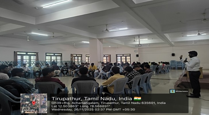 The Department of Data Science, Sacred Heart College (Autonomous), Tirupattur, organized a Seminar on “Human Stress Management” on 26th November, 2025. The Chief Guest, JFM E. Selvam, Zone Trainer, JCI India, explained the nature of human stress, common triggers among students, and various methods for improving emotional balance. To make the session more engaging, he conducted various psychology-based games and activities designed to help students understand stress responses, teamwork, mindset, and emotional behavior. The seminar proved to be highly beneficial in creating awareness about stress management and promoting emotional well-being among students.
