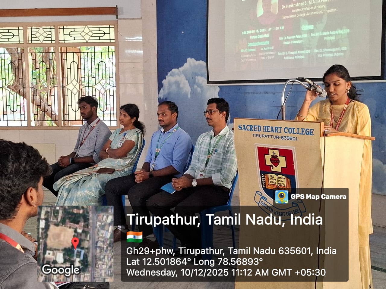 The invited talk was delivered by Dr. Harikrishnan S., M.A., M.Phil., Ph.D., Assistant Professor of History, Sacred Heart College (Autonomous), Tirupattur). In his insightful address, he shed light on the origins and evolution of human rights, the framing of the Universal Declaration of Human Rights (UDHR), and the fundamental rights guaranteed by the Indian Constitution. He also discussed contemporary issues like women’s rights and child protection. His presentation encouraged students to view human rights as essential principles that shape a fair and just society.