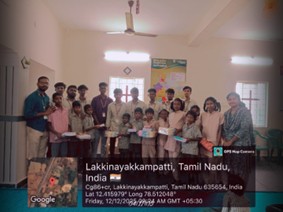 Another group of 10 students visited Karunya Children's Home, accompanied by the Faculty Member Mr. K Saravanakumaran. The programme commenced with an introductory address delivered by Mr. K Saravanakumaran. Around 35 school-going children benefited from this visit. The students interacted with the children and distributed stationery items such as notebooks, pens, and pencils, along with personal-care products including soap and shampoo.