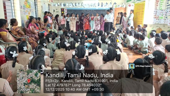 Sharing Day was celebrated by the UG Association of the Department of Biochemistry on 12.12.2025 at the Government Primary School, Kandhili Village, Tirupattur. All the III UG students, along with student representatives from other classes, Dr. I. Niyas Ahamed, Head, and two faculty members, Dr. K. Sheela and Dr. S. Govindarajan, actively participated in the programme. A total of 175 school children benefited from the distribution of stationery kits containing files, pens, pencils, erasers, scales, sharpeners, and sketch pencils. As part of the celebration, more than ten children received special gift packs for their active participation in the games conducted. Snacks were also provided as refreshments. To make the event more meaningful, students delivered an inspiring Sharing Day message and organized fun-filled games, creating a joyful and memorable experience. The beneficiaries expressed their heartfelt gratitude for this thoughtful initiative by the Sacred Heart community.