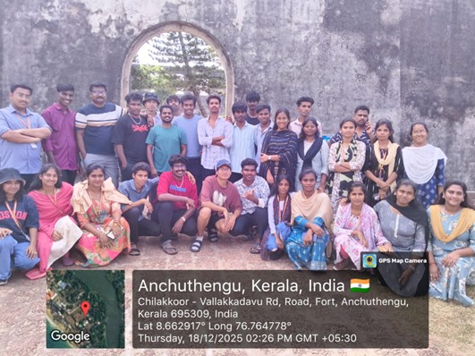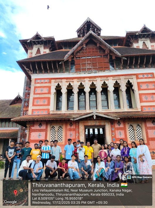 The Educational Trip was conducted from 17 to 20 December 2025 as part of experiential and field-based learning by the PG Department of Social Work (HRM), Sacred Heart College (Autonomous), Tirupattur. The trip was designed to provide students with academic exposure beyond the classroom by combining industrial visits, rehabilitation centre exposure, and cultural learning. Students gained practical insights through visits to Technopark, Travancore Titanium Pvt. Ltd., and Santhawana Rehabilitation Centre, which helped them understand organisational structures, HR practices, and psychosocial support systems. Cultural and environmental learning was enhanced through visits to the Napier Museum, Poovar Island, and Alappuzha backwaters. Reflection and evaluation sessions encouraged critical thinking, teamwork, and leadership skills among the trainees.