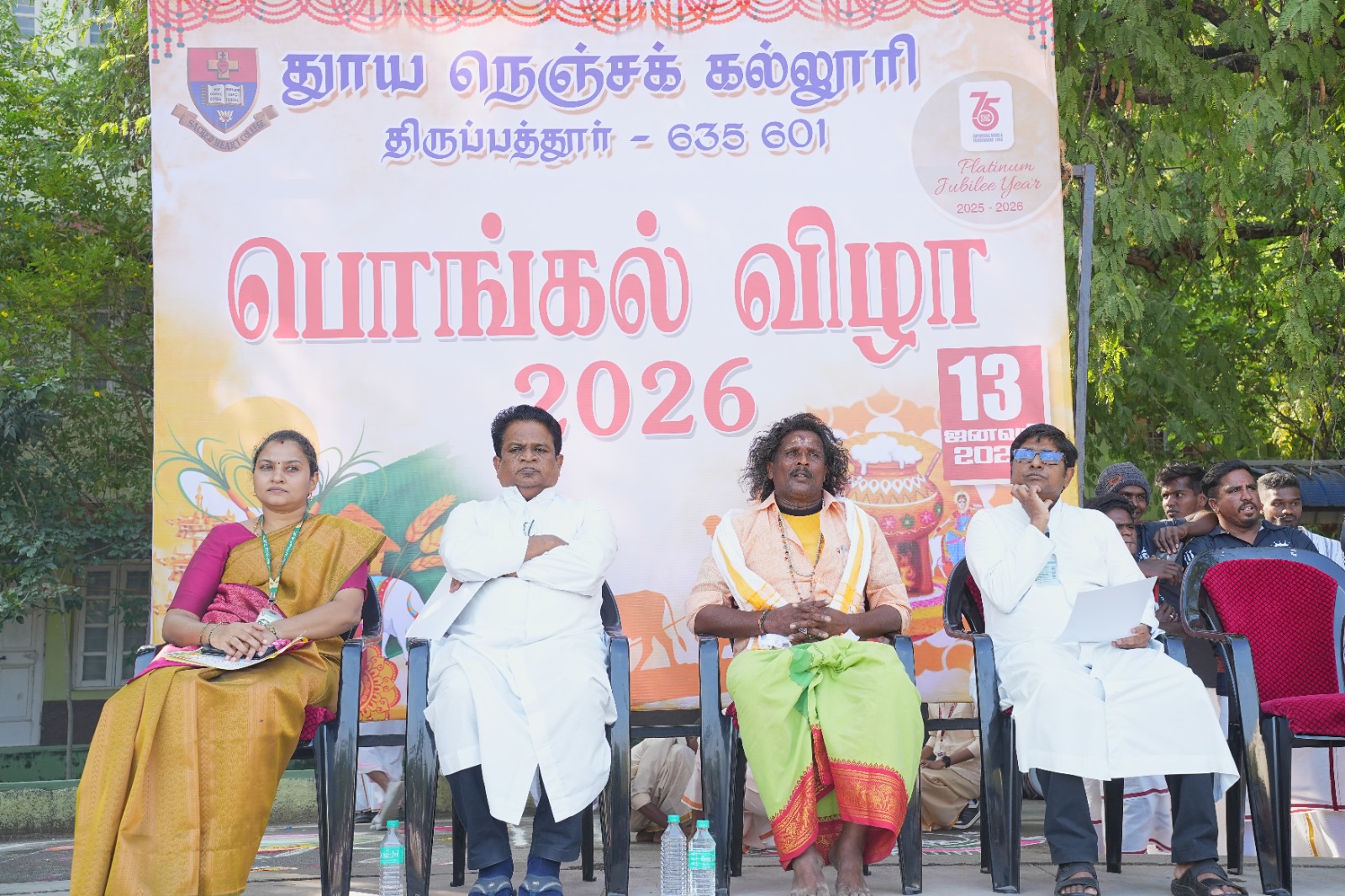Sacred Heart College (Autonomous) in Tirupattur organized a vibrant celebration titled "Pongal Thiruvizha 2026" (Shift-2) on January 13, 2026. The event took place at the college grounds from 2:45 PM to 5:00 PM, bringing together students and faculty to honour Tamil culture and traditions. The festivities commenced with the traditional lighting of the fire for the Pongal pot, symbolizing prosperity and the beginning of the harvest season. Then Mr. Chakravarthy performed his Traditional Parai Attam. The college management honoured Mr.Chakravarthy with award titled “Kalai Valamani Virudhu” for the extraordinary contribution to the Tamil Cultural Dance Paraiattam. Dr. J. Jayachitra, Professor of the Tamil Department, delivered the introductory address, explaining the significance and objectives of the celebration. This was followed by a traditional Pongal dance that set a high-spirited tone for the celebration. Special Pongal greetings and blessings were offered by Rev. Dr. Praveen Peter, Rector and Secretary and Rev. Dr. Theophil Anand, Additional Principal, who emphasized the Tamil culture.