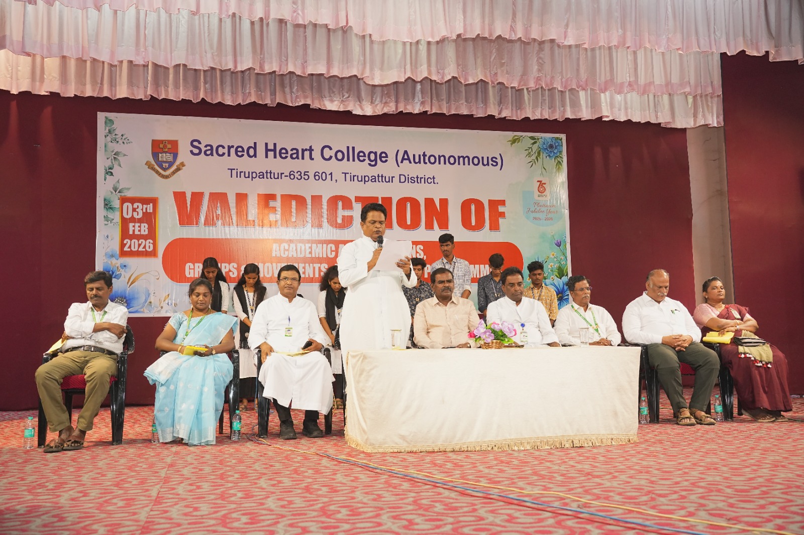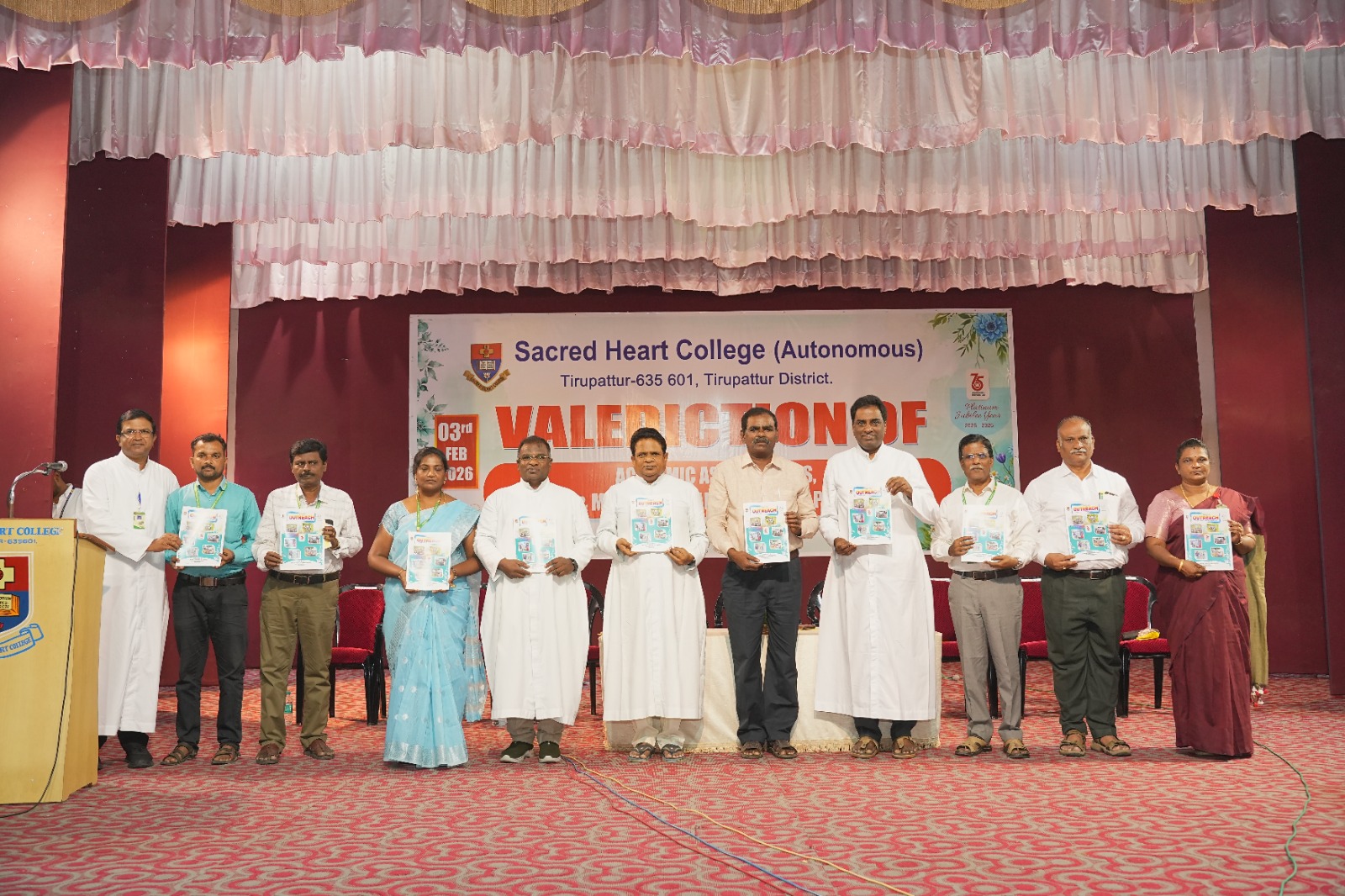 The Valediction of Academic Associations, Groups & Movements and Outreach Programmes of Sacred Heart College, was solemnly and gracefully conducted on Tuesday, 03rd February 2026, at 11.15 a.m., in the Kamarajar Arangam.