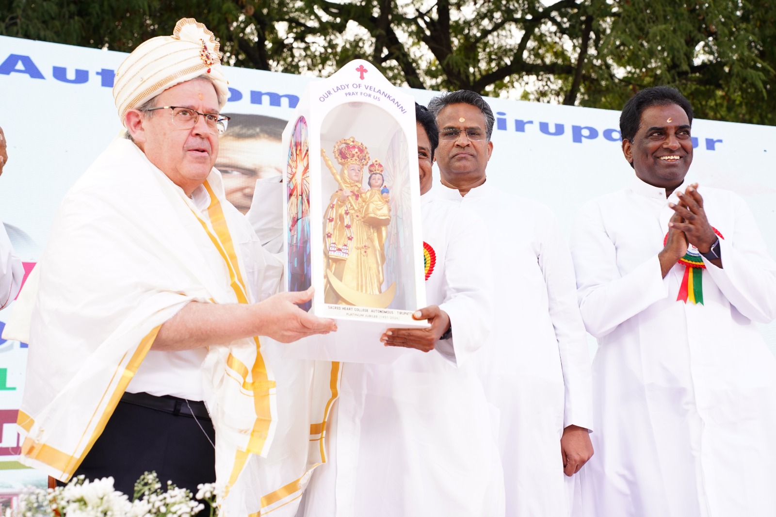 Rt. Rev. Ambrose Pitchaimuthu, Bishop of Vellore, extended his respectful greetings on the Platinum Jubilee celebrations of Sacred Heart College, Tirupattur. Reflecting on every visit to the sacred campus, he noted how Christ’s living presence continues to inspire, strengthen, and guide all vocations and missions. He recalled the heroic history of the Church in the region and the growth of the Vellore Diocese through missionary service and Salesian dedication. Highlighting the college as a centre of knowledge, faith, and formation, he appreciated the contribution of the Salesian congregation, faculty, staff, and alumni. He concluded by invoking God’s blessings on the institution’s continued mission of education and service.