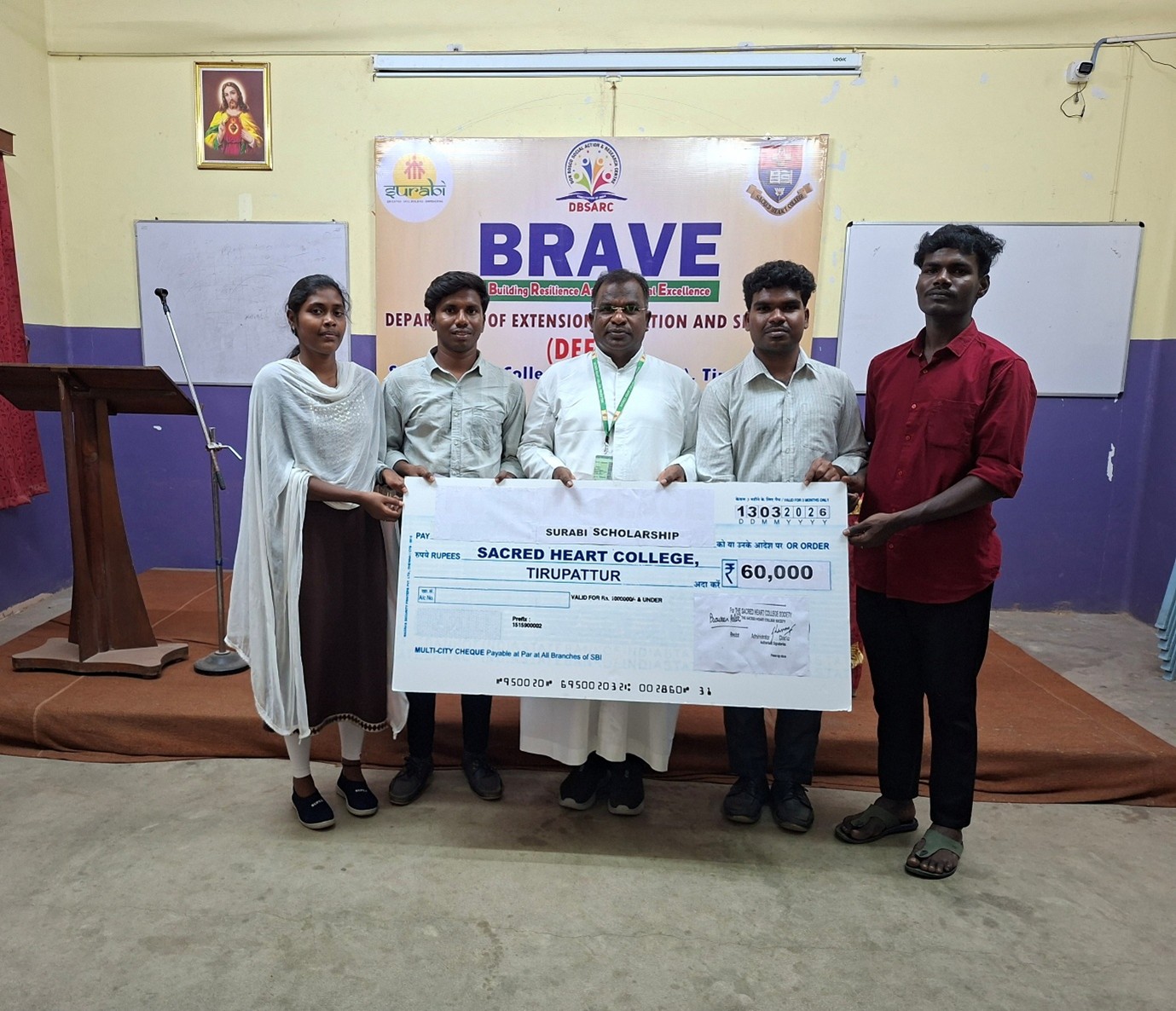 Department of Extension Education and Services (DEEDS), Sacred Heart College(Autonomous) Tirupattur in collaboration with SURABI, Chennai, successfully organized a Scholarship Distribution Programme on 13th March 2026 at the DEEDS (DB Centre) premises. The programme was conducted with the objective of supporting deserving students in their educational pursuits and promoting inclusive development through financial assistance.